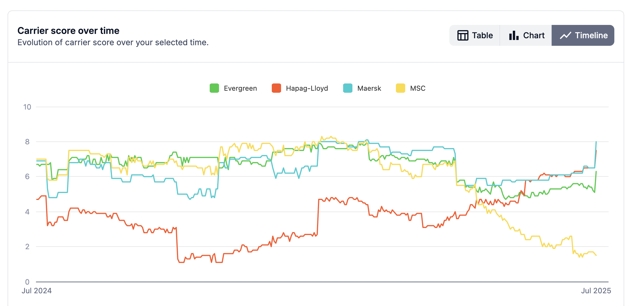 The result: Each carrier receives a final score between 0 and 10, making it easy to see how they rank side by side.