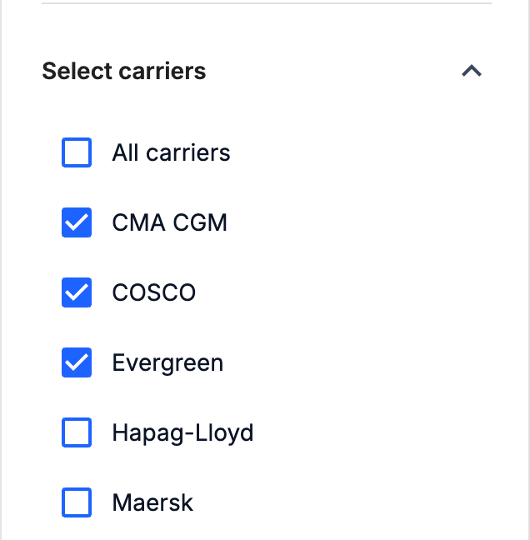 Select trade lane(s) Choose a specific origin/destination pair