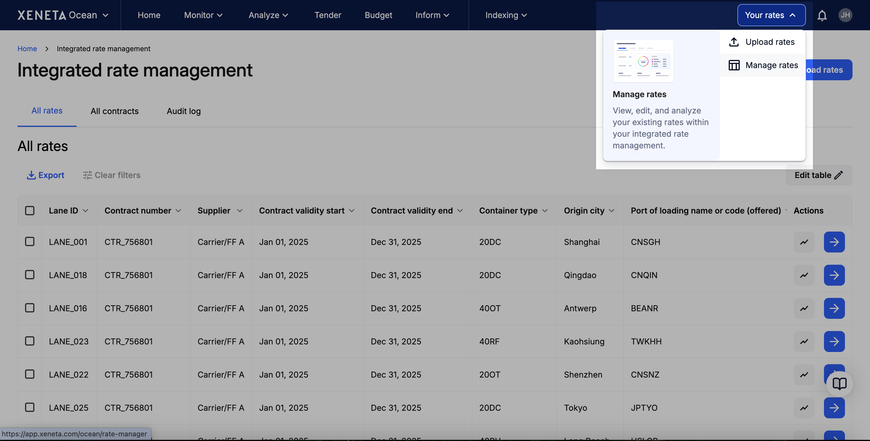 Log into your Xeneta account and navigate to Integrated Rate Management.