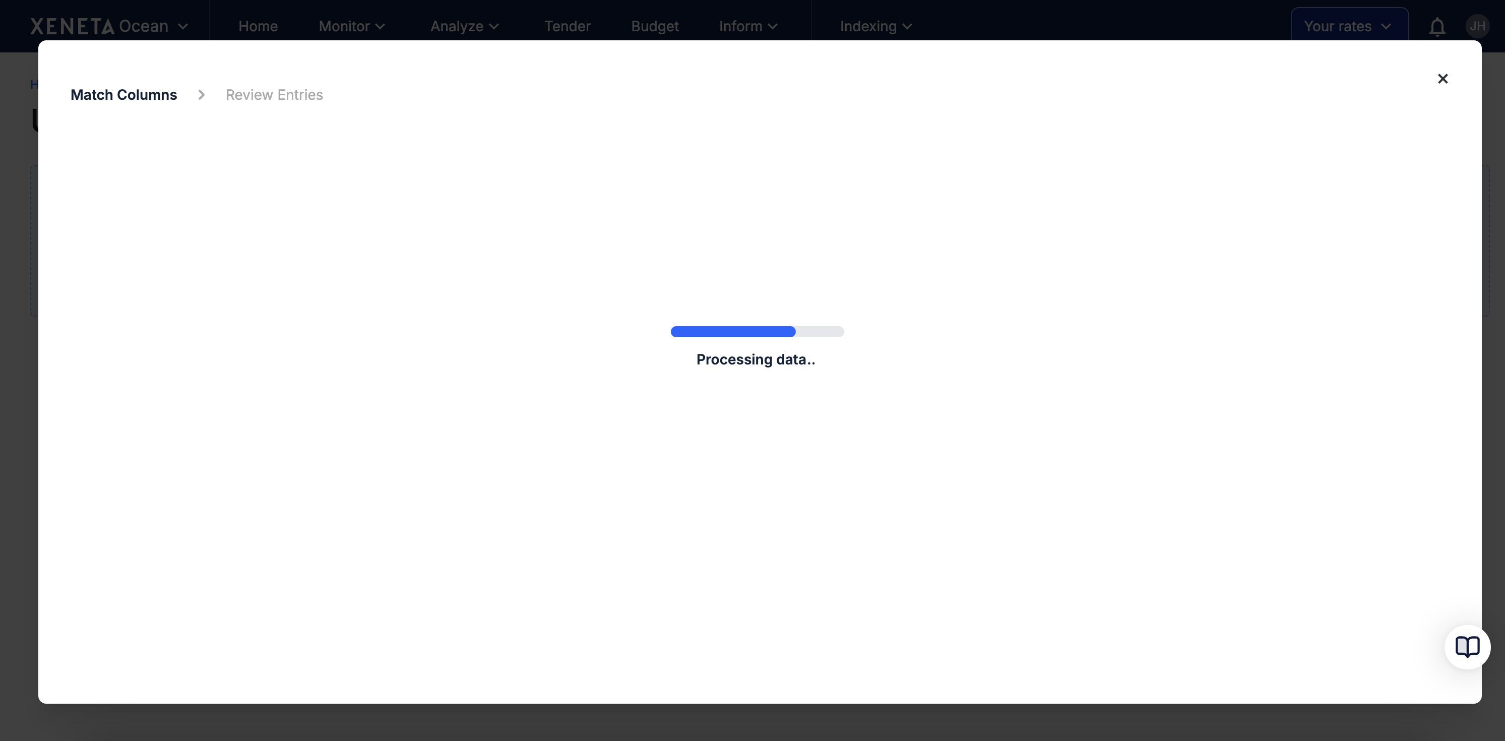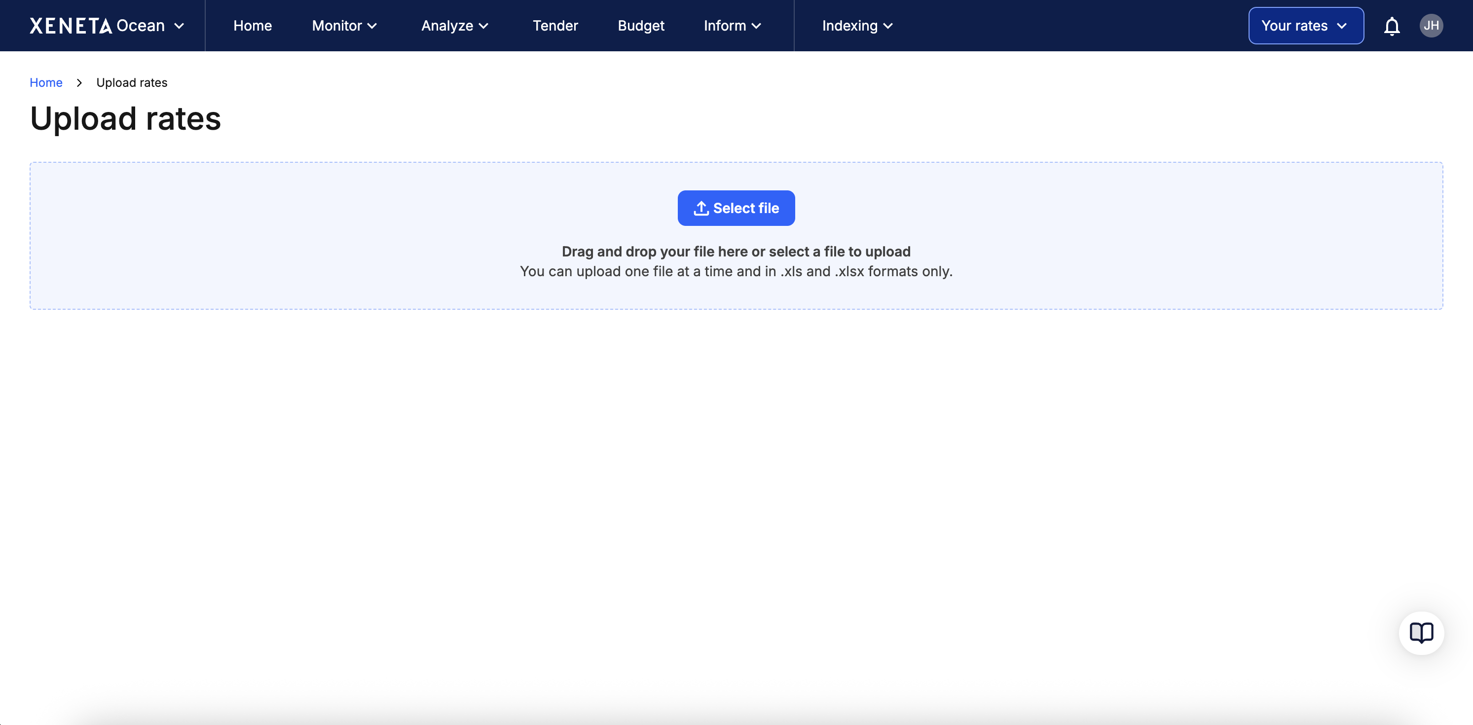 Click Select file and select your completed Xeneta rate sheet file (or drag and drop your file).
