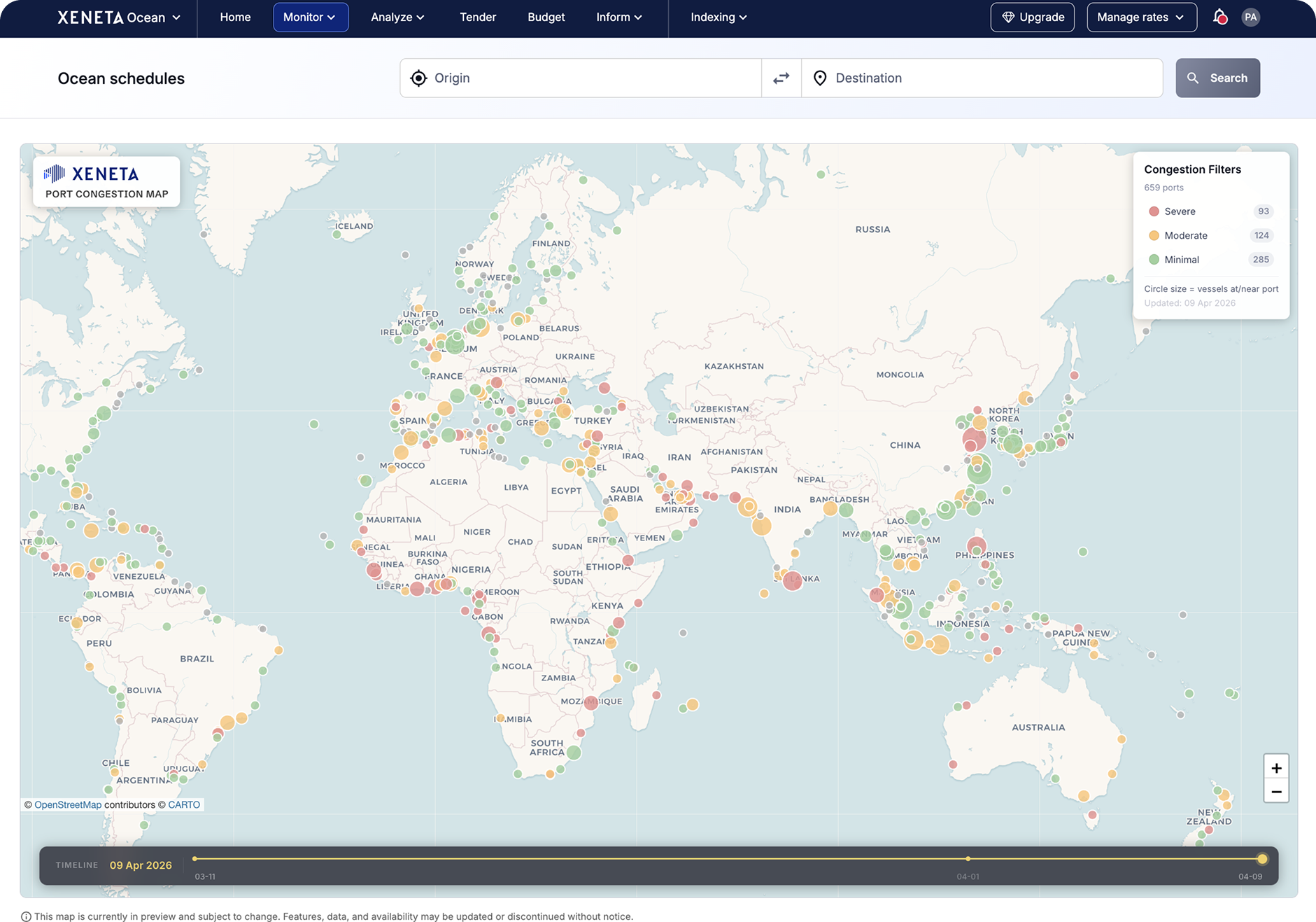 The data comes from eeSea, a schedule intelligence company Xeneta acquired in 2025. Vessel-level activity, (such as where a vessel is and when it actually arrived),is tracked using EIS data and satellite information.